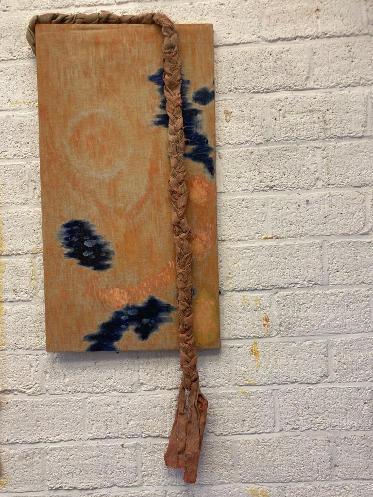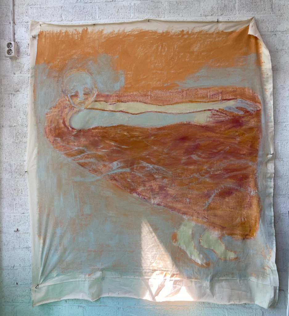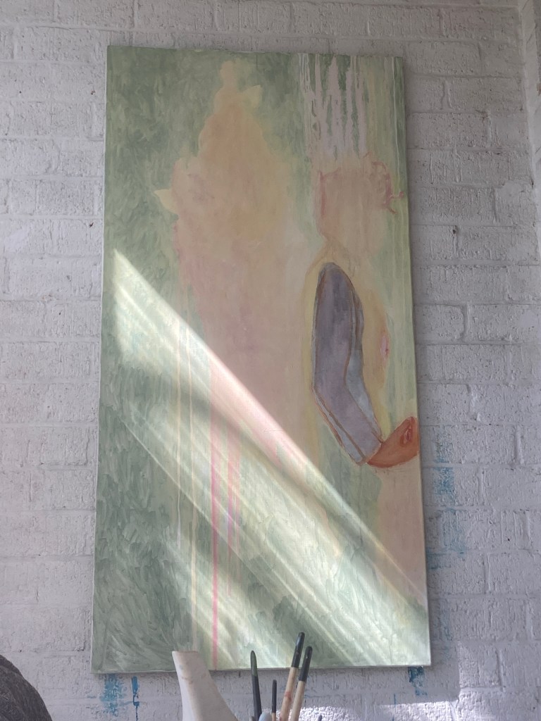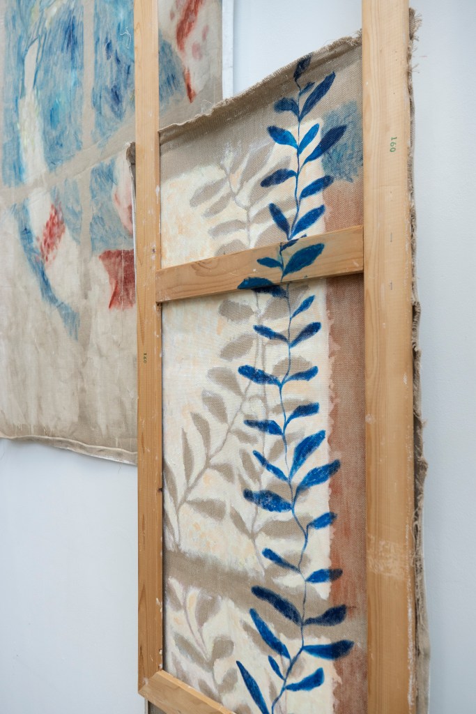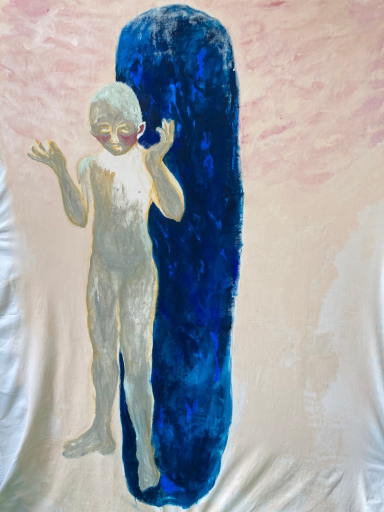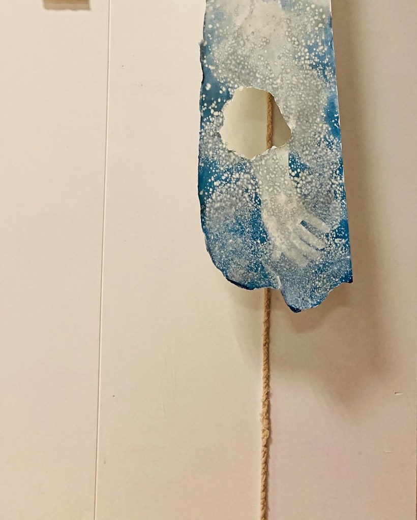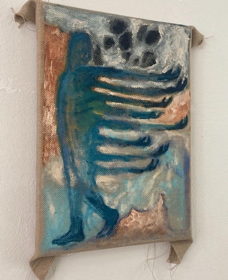Painting and spatial installation form the core of my practice, often combined with found materials. Fragmentation, layering, and intuitive searching guide the work, allowing it to dwell in in-between states — moments of uncertainty, transition, and emotional nuance.